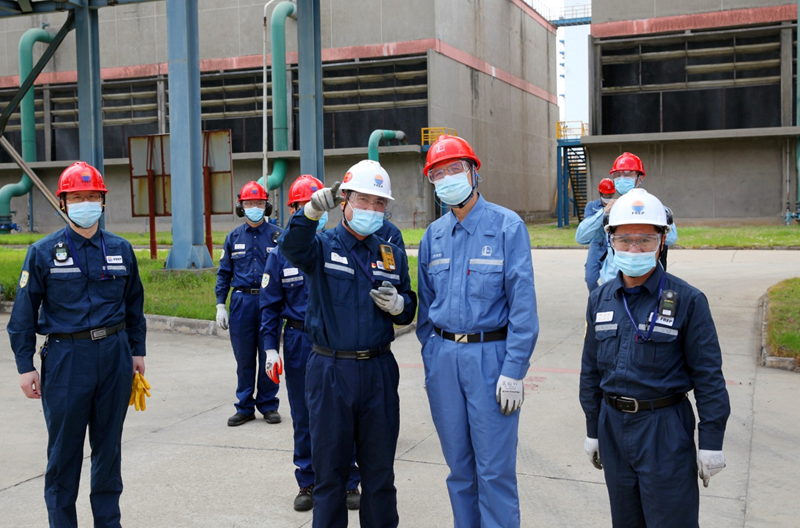 In the morning of April 25, Liu Xiangdong, chairman of the company and secretary of the company Party Committee, visited the IGCC site of Utilities Business Team for field research. He fully affirmed that the responsible departments and construction contractors successfully completed the maintenance work safely and efficiently in the special period of epidemic. He recognized the Utilities Business Team for the achievements in aspects of operation management and the winning of the “Award of Global Best Operation of Residue Oil Gasification” issued by Shell for two consecutive years.