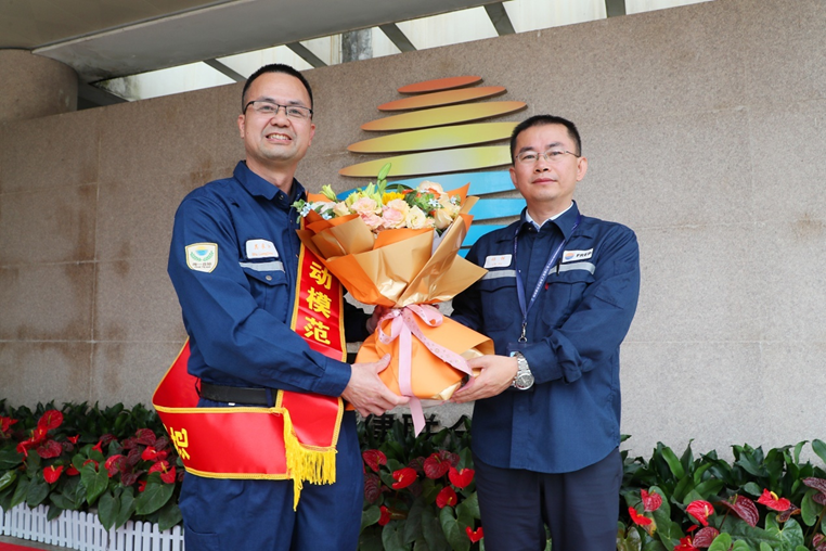 On the morning of April 24, the Company celebrated at the departure of Wu Liangjiang, the Model Worker of Fujian Province and the production operation support engineer in FREP Process Department, to Fuzhou to receive the award. Lin Xu, member of the Party Committee and Vice President of the Company, attended the ceremony.