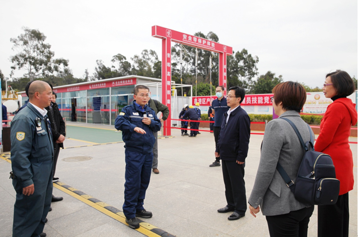 At Huang Xiaobin Model Worker Safety Innovation Studio, Jia Haitao learned about the construction of the Studio, expressed strong interest in various safety experience items, and visited the functional areas such as fell from height, fire fighting, blind plate operation and mechanical injury. He inquired about the functions of the experience items in detail, and exchanged how to use these functions with others with great interest. He commented that it was practical to simulate the real operation scenarios, and the trainees could experience the importance of safety through hands-on practice, which should be praised.