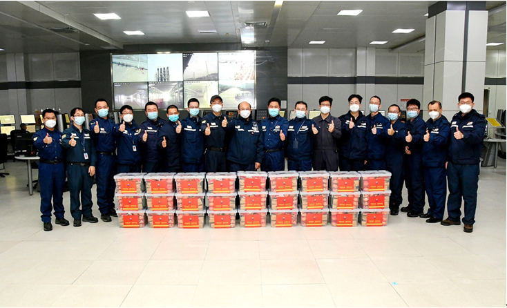 Departed the plant area, Zhao Tianxing and other management personnel drove to Liyuwei Terminal to visit the frontline employees of Terminal Business Team. They learned about berthing operation and products marine delivery, and hoped that everyone would pay attention to safety during operations, as well as take regular measures against the COVID-19, and work hard for a safe and peaceful Spring Festival.