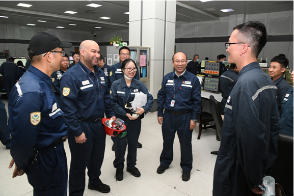 赛乐.扎伊德、赵天星、杨飞一行来到电气运行监控中心,询问夏季电气运行情况,并强调高温酷暑对电力运行带来严峻考验,要精心维护,为装置平稳运行保驾护航。