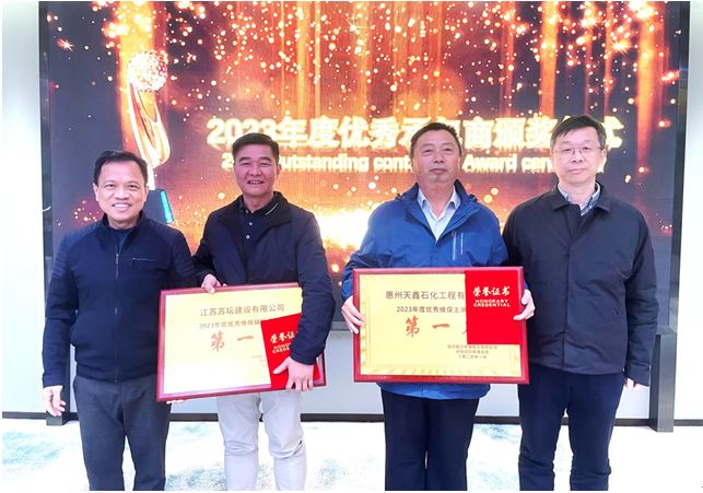 会议表彰了2023年度优秀承包商。主承包商第一名:惠州天鑫;辅助承包商第一名:江苏苏坛;主承包商第二名:长炼机电;辅助承包商第二名:潮阳建安;主承包商第三名:南京扬子检安;辅助承包商第三名:舒城铁甲;专业优秀承包商:厦门盈盛捷、福源物流、振通汽修、惠安永鑫、厦门宏轩达、北京燕华。(肖万元 刘吉文)