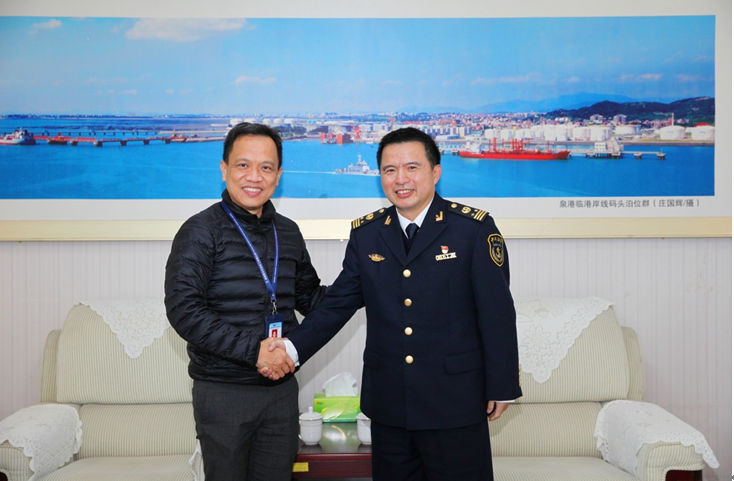 2月7日,公司副总裁韩扬元一行到泉港海事处走访,感谢泉港海事处在过去一年里对公司生产经营的支持和帮助。