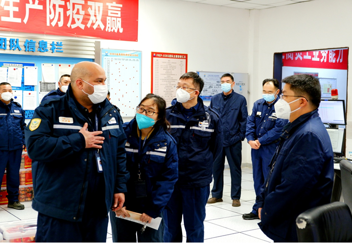 公司领导来到石化园区的EOEG中控室慰问。赛乐·扎伊德说,2022年,在全体员工的共同努力下,公司一手抓疫情防控,一手抓持续提质增效,经受住了疫情大考,取得较好的业绩,希望大家继续保持安全平稳运行,为公司持续提质增效做出新贡献。